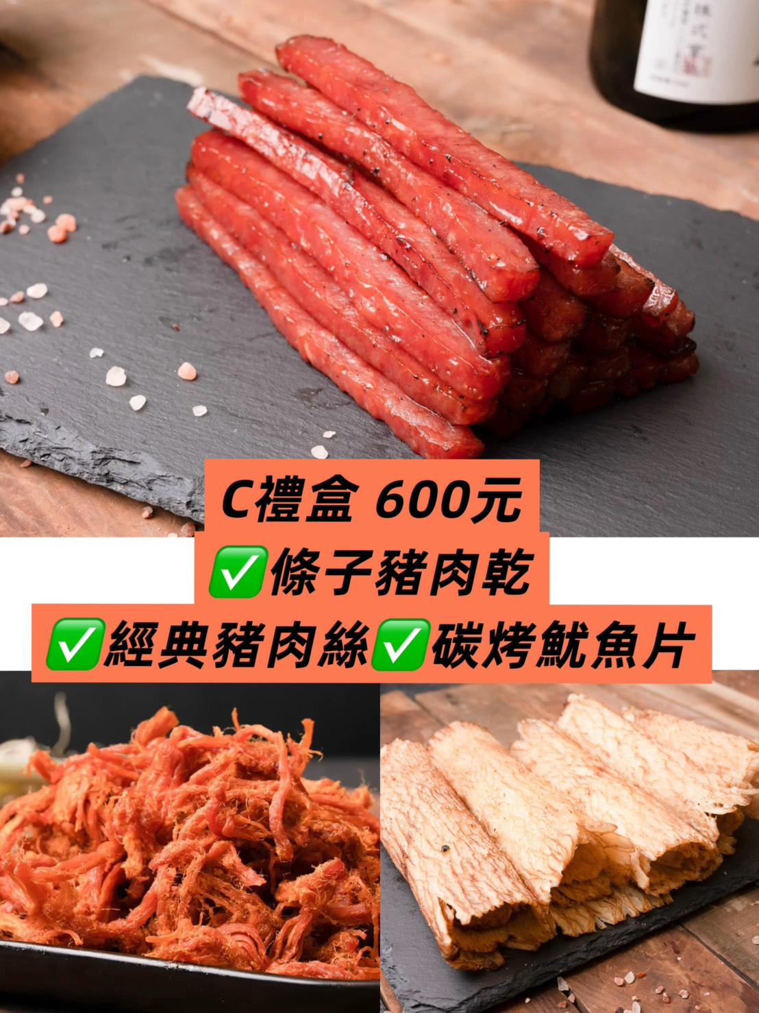 規格:條子肉乾+經典豬肉絲+碳烤魷魚片