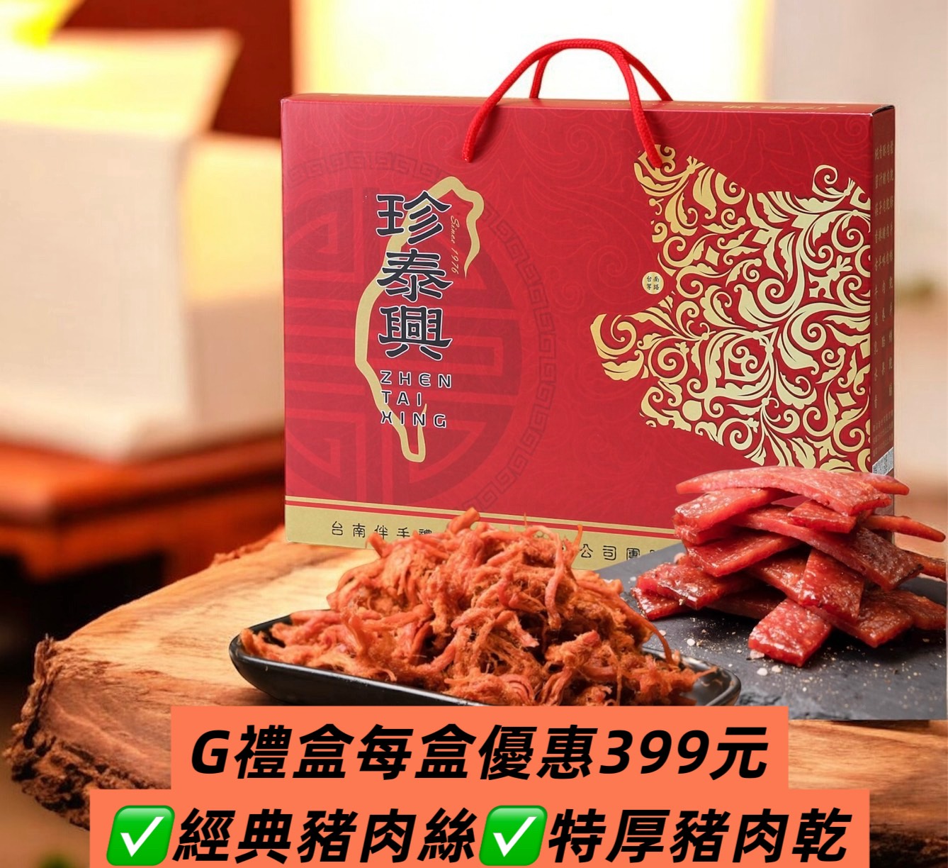 榮獲114年台南好禮特色伴手禮首獎 <珍愛台南味> 內含: 100%純肉鬆(純粹)+圓月燒肉乾(圓滿)+古早味豬肉絲(府城)+薄脆虱目魚肉乾海苔卷(在地)