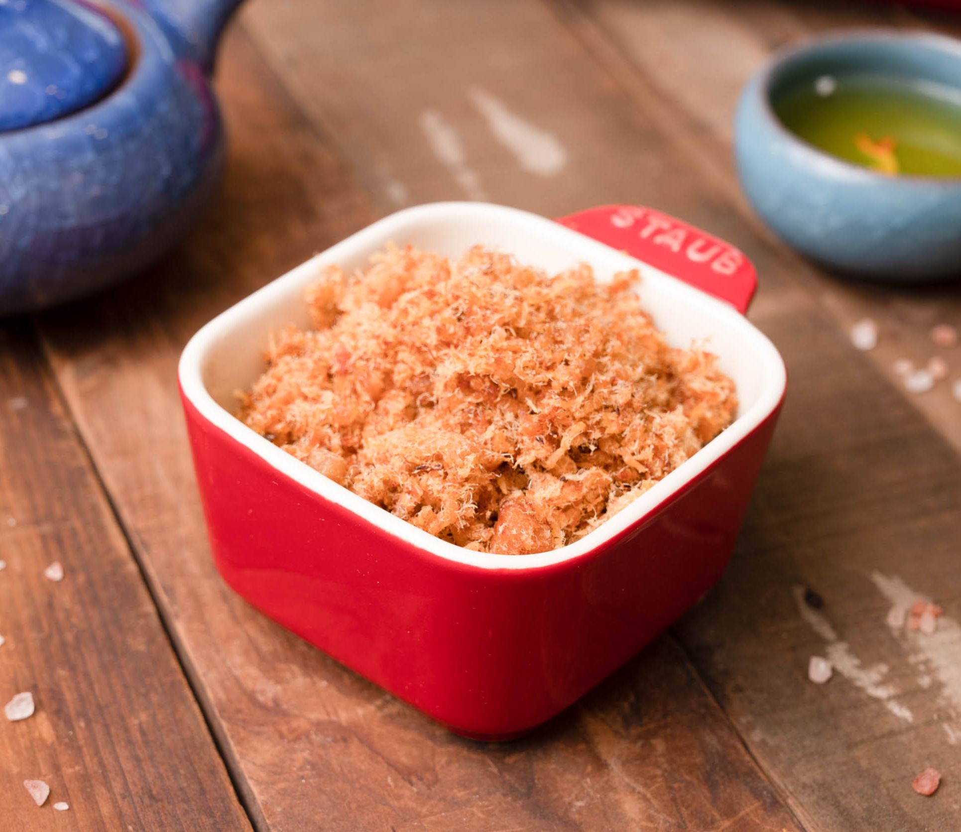 嚴選台灣新鮮豬後腿肉,經細火翻炒至鬆軟香酥,拌入香氣濃郁的芝麻與酥脆海苔片。