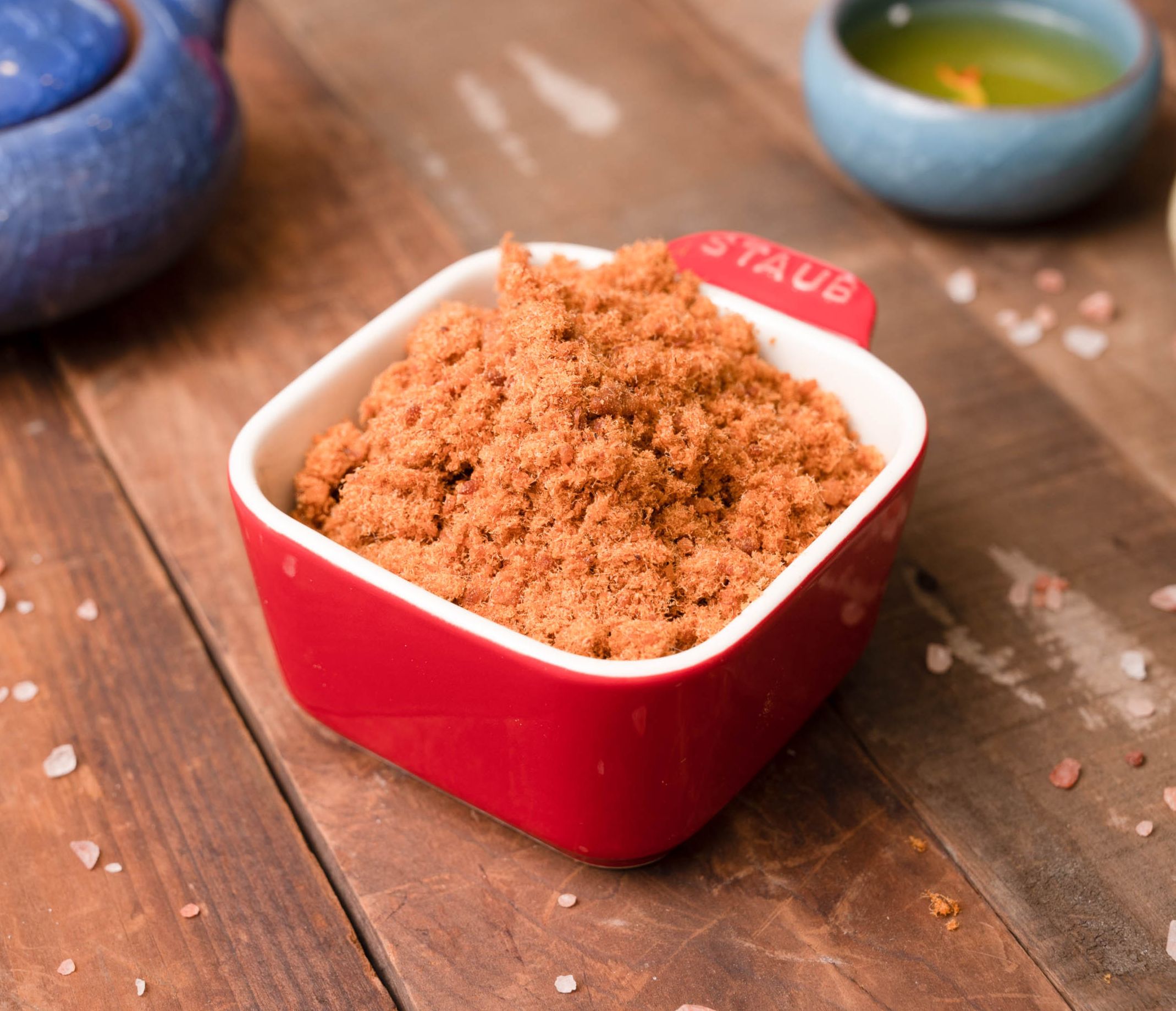 嚴選台灣新鮮豬後腿肉,經細火翻炒至鬆軟香酥,拌入香氣濃郁的芝麻與酥脆海苔片。